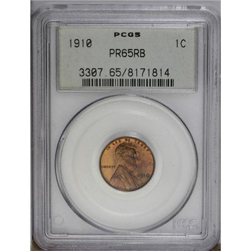 <B>1910<1C> PR65 Red and Brown PCGS.</B></I> Rich violet, cobalt-blue, and yellow-gold toning adorns the admirably preserved surfaces of this lovely Gem. Both sides of the piece are virtually pristine. This outstanding matte proof Lincoln cent is encased in a prior generation holder. <BR><BR><B>Important notice:</B> Heritage usually auctions material at the rate of 200-250 lots per hour. On some occasions eBay Live bid software or the Internet may not be able to keep up with the pace of the auction. We recommend placing a realistic absentee bid now as insurance to avoid disappointment. Occasionally the auctioneer may eliminate or reject an eBay Live bid, and the auctioneer may also reopen a lot after the close of the eBay live bidding (usually because we missed an audience bid), and may reject your bid even if it shows you as the winning bidder. By bidding via eBay Live, you agree that Heritage may award the lot to another bidder at its sole discretion under the circumstances described above or any other reasonable circumstances. Since eBay bids are not shown to us until we open the lot on the floor, we treat those bids just like floor bids. In most cases the floor responds before the eBay bid is presented to us, due to Internet lag time, so for consistency we have made it a policy that floor bids are always considered first over tie eBay live bids. Also please note that all Heritage lots purchased through eBay Live carry a 20% Buyer's Premium. Please make sure you read the Terms and Conditions before you bid. This lot is being auctioned in conjunction with a live floor auction by Heritage Galleries & Auctioneers. All final auction and invoice information will be supplied by Heritage Galleries & Auctioneers, and all other information should be considered preliminary. Lot:696 <BR><BR><B>Winning Notification and Billing:</B> After the FINAL session in this auction is complete, Heritage will send e-mail and snail mail invoices. This process normally takes several days. All final auction and invoice information will be supplied by Heritage Galleries & Auctioneers, and all other information should be considered preliminary. <BR><BR>This auction will be conducted on a live auction floor and over the Internet through eBay Live. If you choose to place an absentee bid, please take a moment to <font color='#0000ff'><u><a href='http://pages.ebay.com/liveauctions/help/before/laabsentee.html'>learn how eBay Live absentee bidding works</a></u></font><font color='#000000'>