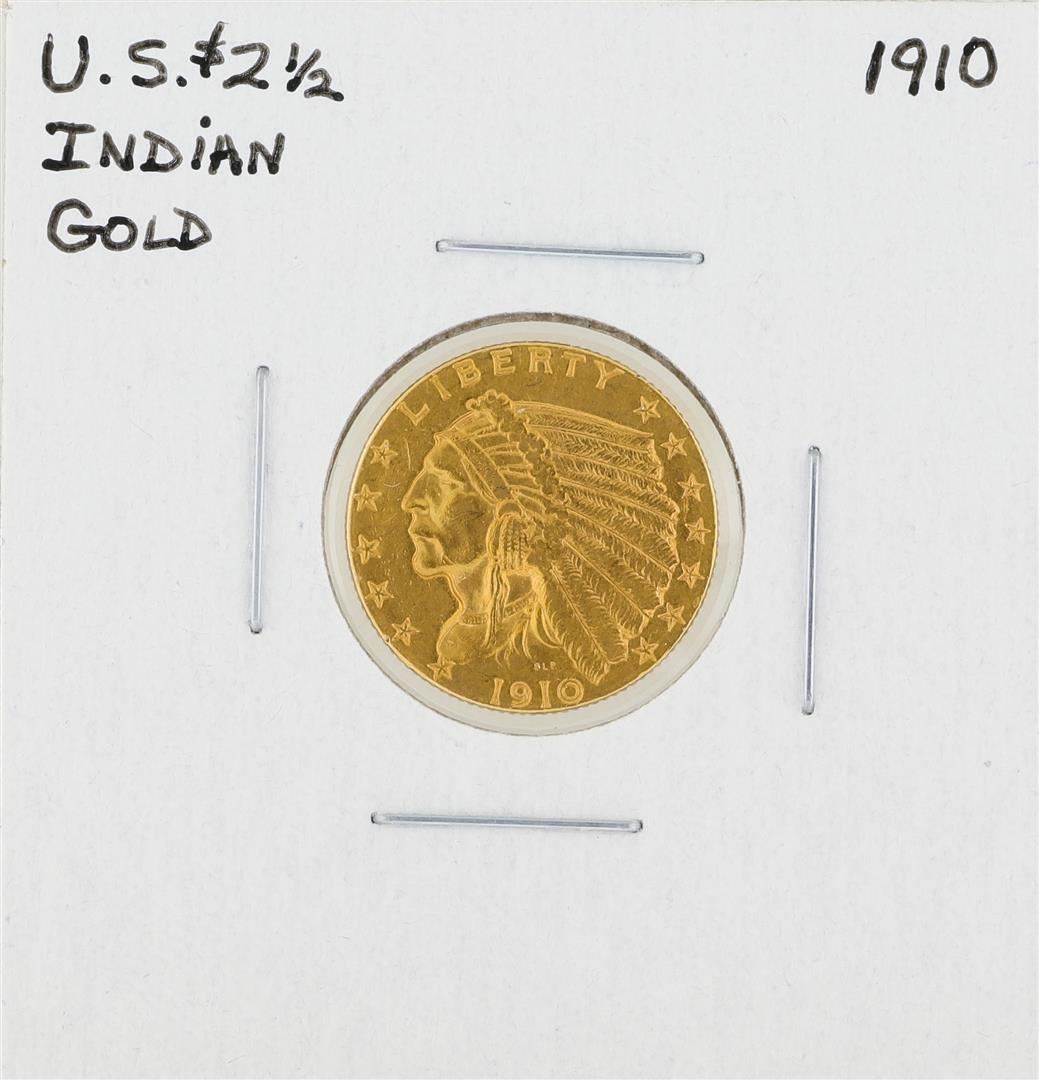 One 1910 $2 1/2 Indian Head Gold Coin.