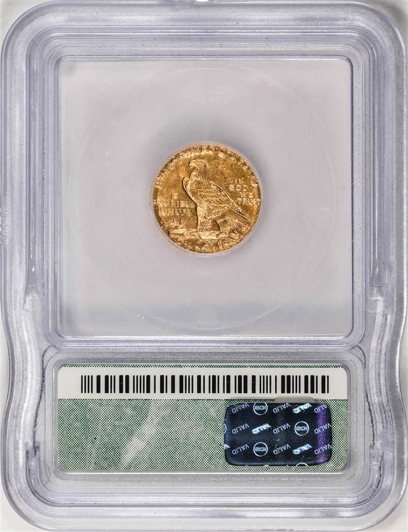 One 1910 $2 1/2 Indian Head Quarter Eagle Gold Coin ICG MS63. ICG Certified.