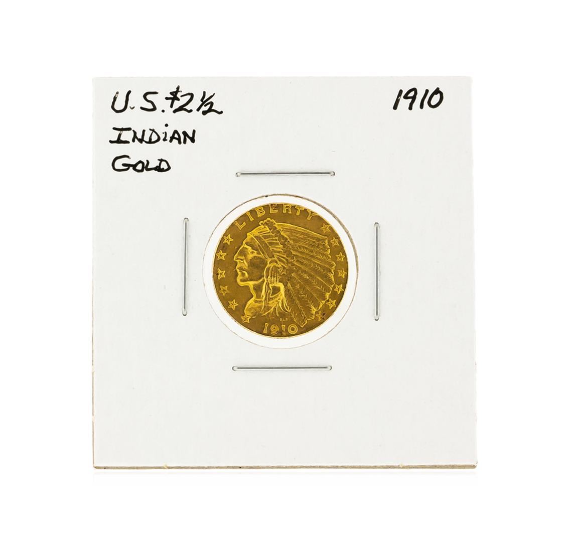 One 1910 $2 1/2 Indian Head Quarter Eagle Gold Coin.