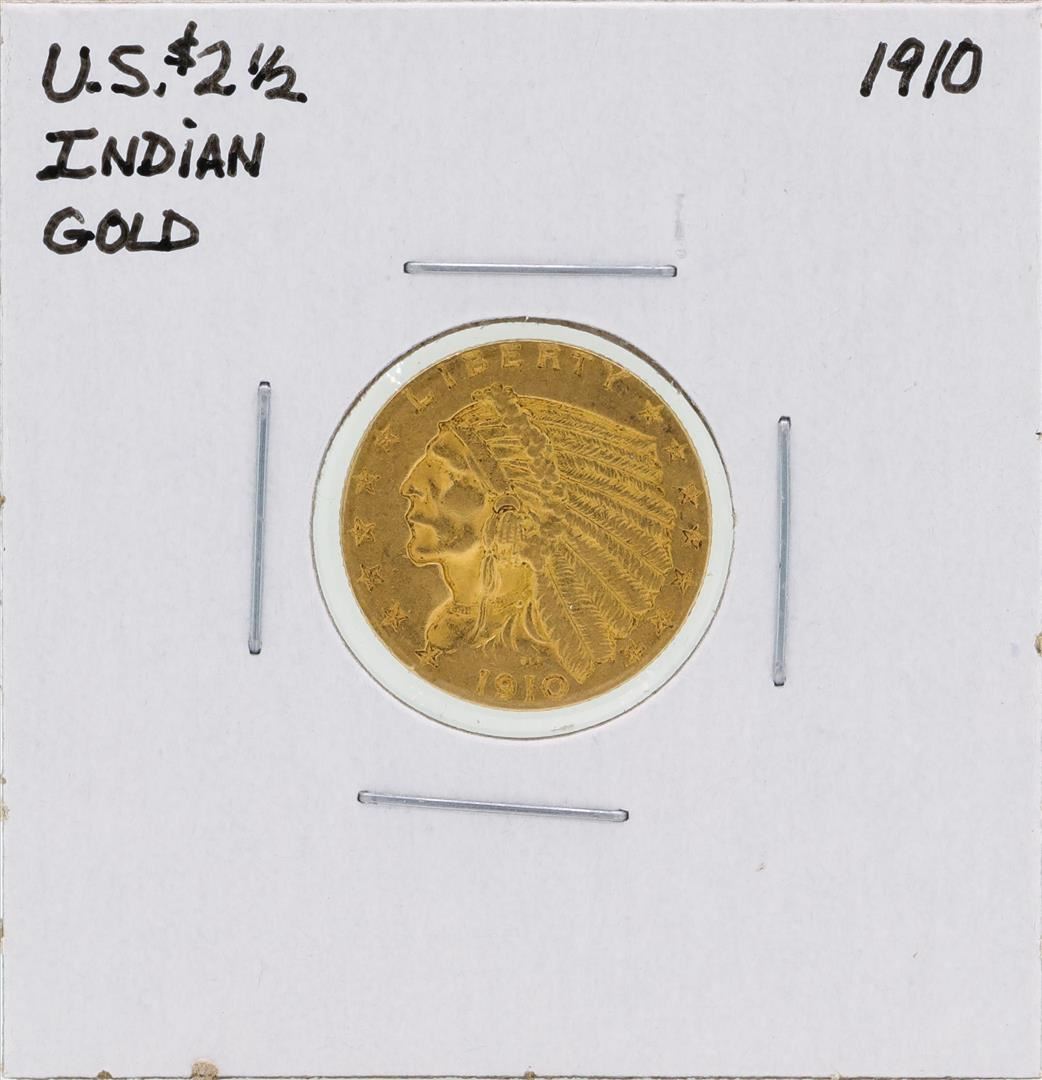 One 1910 $2 1/2 Indian Head Quarter Eagle Gold Coin.