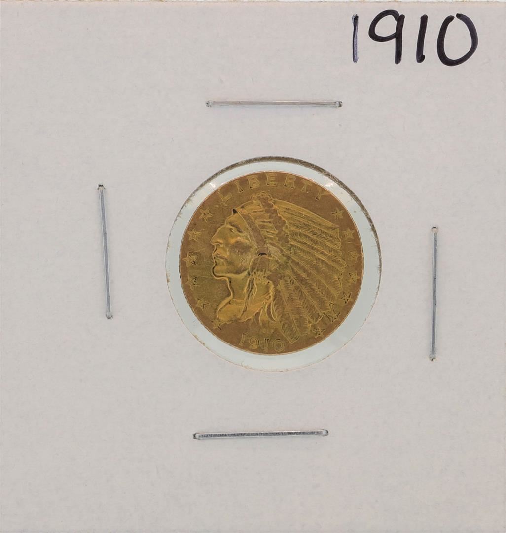 One 1910 $2 1/2 Indian Head Quarter Eagle Gold Coin.