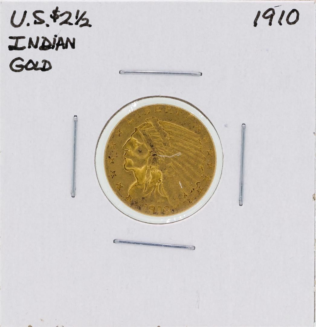 One 1910 $2 1/2 Indian Head Quarter Eagle Gold Coin.