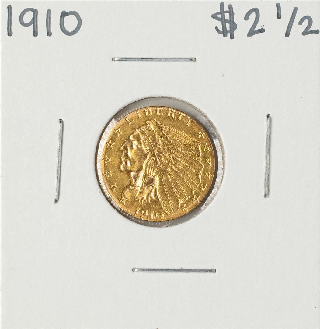 One 1910 $2 1/2 Indian Head Quarter Eagle Gold Coin.