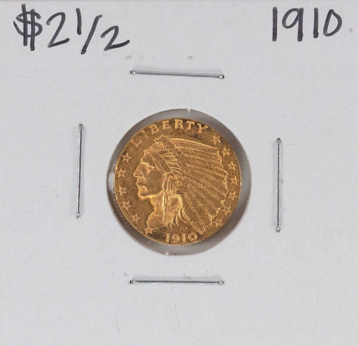 One 1910 $2 1/2 Indian Head Quarter Eagle Gold Coin.