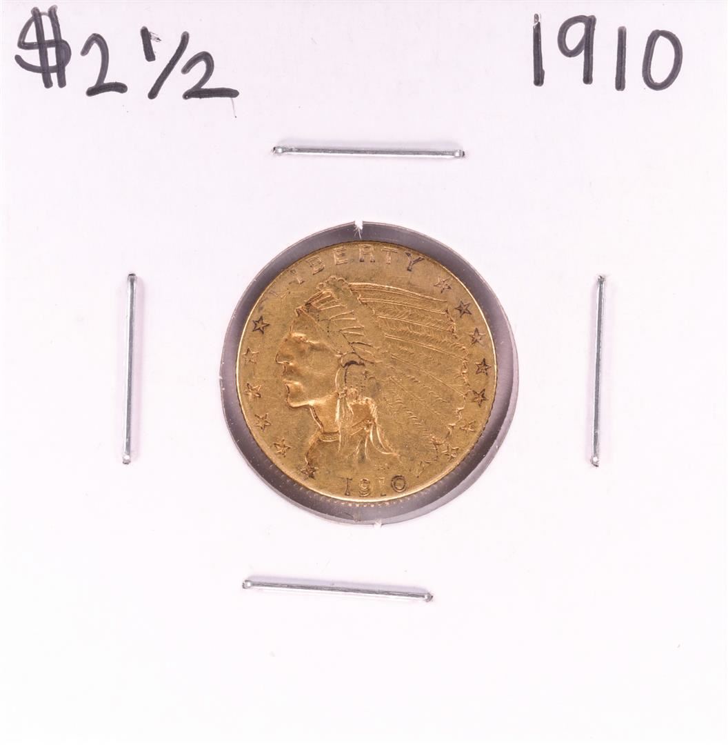 One 1910 $2 1/2 Indian Head Quarter Eagle Gold Coin.