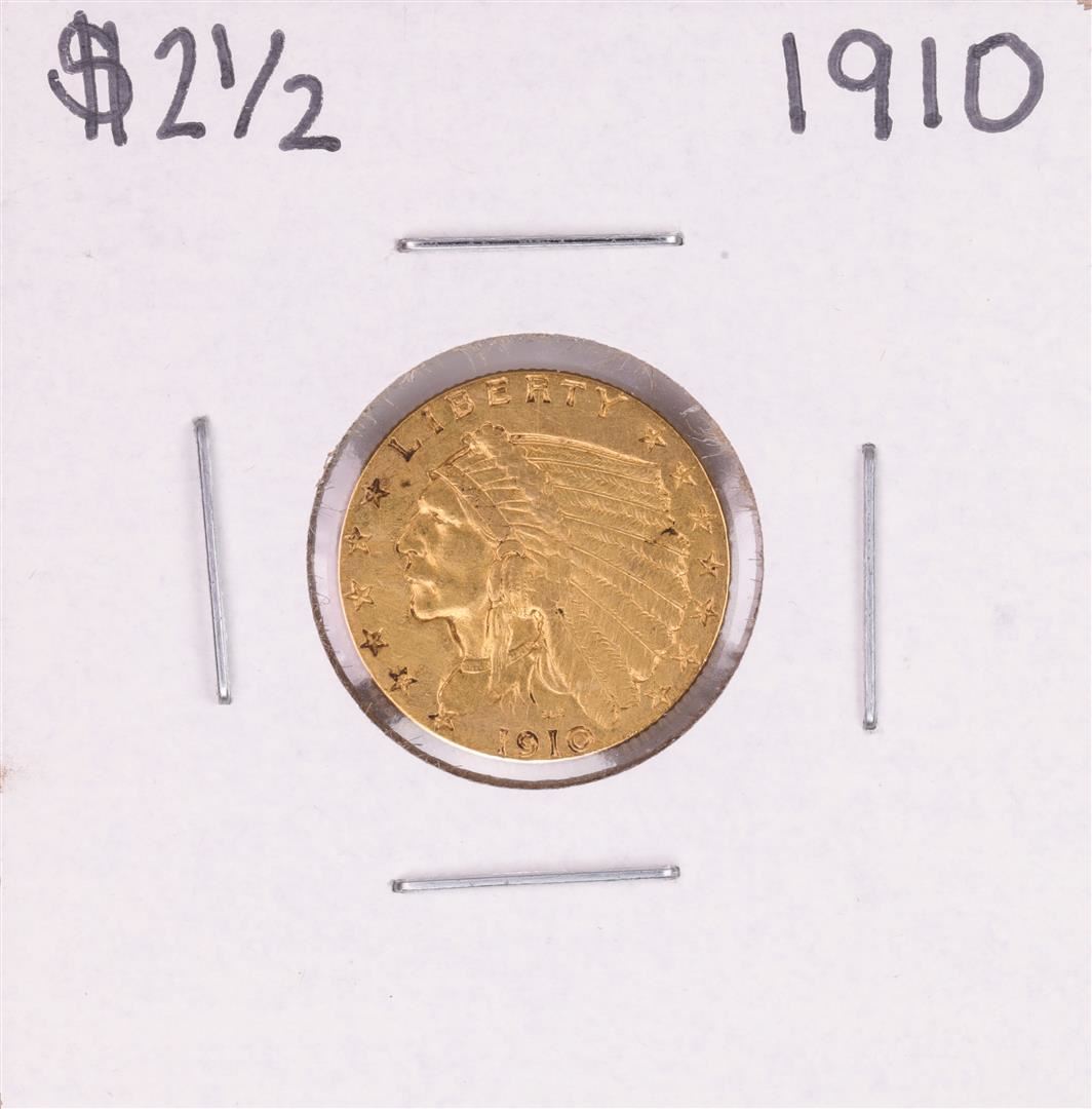 One 1910 $2 1/2 Indian Head Quarter Eagle Gold Coin.
