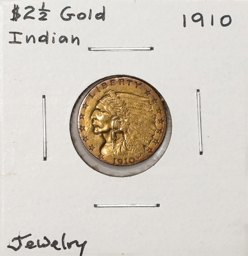 One 1910 $2 1/2 Indian Head Quarter Eagle Gold Coin.