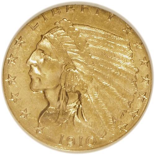 1910 $2 1/2 MS61 NGC. NGC Census: (1066/3239). PCGS Po