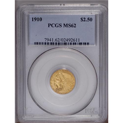 <B>1910 $2 1/2 MS62 PCGS.</B></I> This is a nicely struck coin for the type with honey-gold features. There are few abrasions of any size, particularly when viewed in the context of the assigned grade.