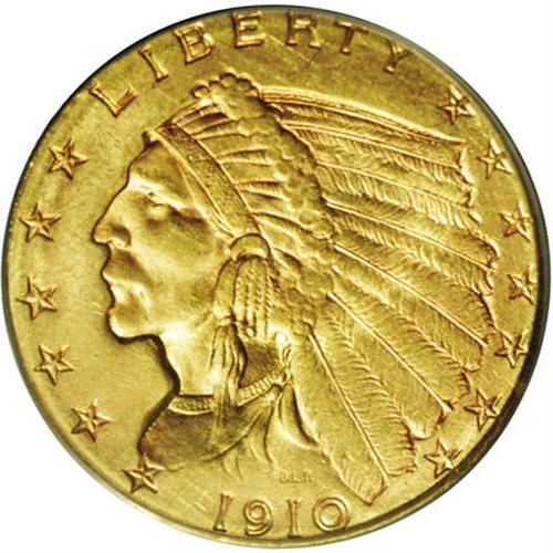 <B>1910<$2 1/2> MS64 PCGS.</B></I> A sharply struck, high grade example. The surfaces are bright and exhibit soft mint frost with an even layer of reddish patina over each side. Unusually clean for this normally heavily abraded type. <BR><BR><B>Important notice:</B> Heritage usually auctions material at the rate of 200-250 lots per hour. On some occasions eBay Live bid software or the Internet may not be able to keep up with the pace of the auction. We recommend placing a realistic absentee bid now as insurance to avoid disappointment. Occasionally the auctioneer may eliminate or reject an eBay Live bid, and the auctioneer may also reopen a lot after the close of the eBay live bidding (usually because we missed an audience bid), and may reject your bid even if it shows you as the winning bidder. By bidding via eBay Live, you agree that Heritage may award the lot to another bidder at its sole discretion under the circumstances described above or any other reasonable circumstances. Since eBay bids are not shown to us until we open the lot on the floor, we treat those bids just like floor bids. In most cases the floor responds before the eBay bid is presented to us, due to Internet lag time, so for consistency we have made it a policy that floor bids are always considered first over tie eBay live bids. Also please note that all Heritage lots purchased through eBay Live carry a 20% Buyer's Premium. Please make sure you read the Terms and Conditions before you bid. This lot is being auctioned in conjunction with a live floor auction by Heritage Galleries & Auctioneers. All final auction and invoice information will be supplied by Heritage Galleries & Auctioneers, and all other information should be considered preliminary. Lot:2474 <BR><BR><B>Winning Notification and Billing:</B> After the FINAL session in this auction is complete, Heritage will send e-mail and snail mail invoices. This process normally takes several days. All final auction and invoice information will be supplied by Heritage Galleries & Auctioneers, and all other information should be considered preliminary. <BR><BR>This auction will be conducted on a live auction floor and over the Internet through eBay Live. If you choose to place an absentee bid, please take a moment to <font color='#0000ff'><u><a href='http://pages.ebay.com/liveauctions/help/before/laabsentee.html'>learn how eBay Live absentee bidding works</a></u></font><font color='#000000'>