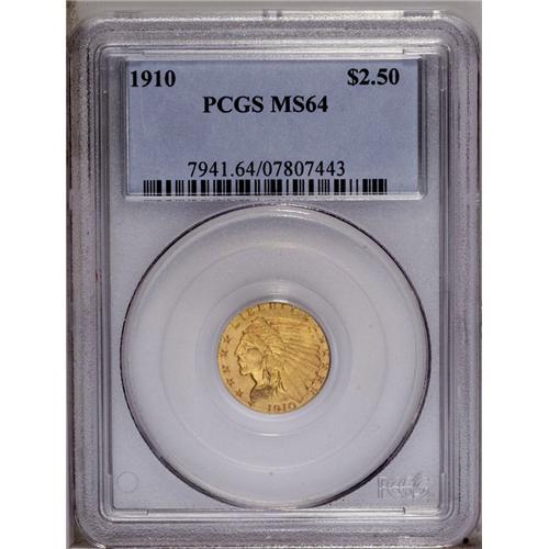 1910 $2 1/2 MS64 PCGS. A sharply struck, high grade ex
