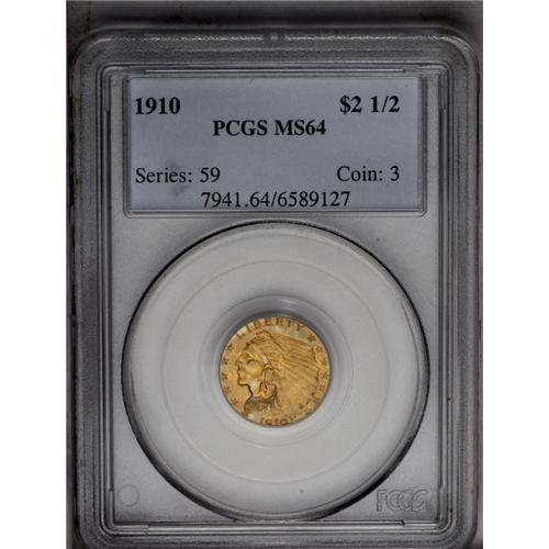 1910 $2 1/2 MS64 PCGS. The lush, rich surfaces are dee 1910