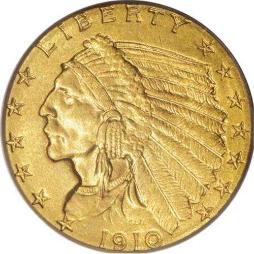 <B>1910 $2 1/2 MS64 PCGS.</B></I> Something in the surface treatment of these mattelike Indian Head coins produces the lovely khaki-gold and hazel-gray coloration that is so infrequently found on other earlier series. So it is with this delightful near-Gem, which shows fine-grained golden-orange coloration and tinges of bluish-gray on the lower obverse. The surfaces are distraction-free, save for the usual stray tick or two on the Indian's cheek and obverse field.<BR><BR><B>Coin Engraver:</B> Bela Lyon Pratt<BR><BR><b>Shipping:</b> Coins & Currency (<a target="_blank" href="http://www.heritageauctions.com/common/shipping.php">view shipping information</a>)