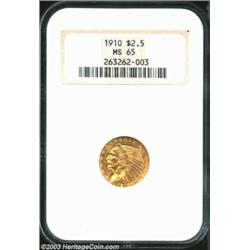 <TABLE cellSpacing=0 cellPadding=0 width="100%" bgColor=#000000 border=0><TBODY><TR><TD width="100%"><TABLE cellSpacing=1 cellPadding=3 width="100%" border=0><TBODY><TR><TD width="100%" bgColor=#79735c><FONT face=arial color=#ffffff size=3><B>Description</B> </FONT></TD></TR><TR><TD width="100%" bgColor=#ffffff><FONT face=arial size=2><B>1910 $2 1/2 MS65 NGC.</B></I> This is an extraordinarily well preserved Indian quarter eagle. The fields and raised portions of the design are virtually abrasion-free and each side has glowing, golden mint luster. Rarely encountered so fine. Population: 51 in 65, 2 finer (7/03). </FONT></TD></TR></TBODY></TABLE></TD></TR></TBODY></TABLE><BR><A name=PricesRealized></A><TABLE cellSpacing=0 cellPadding=0 width="100%" bgColor=#000000 border=0><TBODY><TR><TD width="100%"><TABLE cellSpacing=1 cellPadding=3 width="100%" border=0><TBODY><TR><TD width="100%" bgColor=#79735c><A name=PR><FONT face=arial color=#ffffff size=3><B>Previous Prices from Heritage Auctions</B> </FONT></A></TD></TR><TR><TD bgColor=#f6f6ed><TABLE cellSpacing=0 cellPadding=0 width="100%" border=1><TBODY><TR><TD align=middle width="33%"><B>Date</B></TD><TD align=middle width="33%"><B>Service</B></TD><TD align=middle width="33%"><B>Price</B></TD></TR><TR bgColor=whitesmoke><TD width="33%"><B>07/30/1994</B></TD><TD width="33%">PCGS</TD><TD width="33%">$6,490.00</TD></TR><TR bgColor=whitesmoke><TD width="33%"><B>02/06/1995</B></TD><TD width="33%">PCGS</TD><TD width="33%">$6,710.00</TD></TR><TR bgColor=whitesmoke><TD width="33%"><B>02/16/2000</B></TD><TD width="33%">PCGS</TD><TD width="33%">$3,335.00</TD></TR><TR bgColor=whitesmoke><TD width="33%"><B>03/01/2000</B></TD><TD width="33%">NGC</TD><TD width="33%">$3,450.00</TD></TR><TR bgColor=whitesmoke><TD width="33%"><B>04/23/1999</B></TD><TD width="33%">NGC</TD><TD width="33%">$3,910.00</TD></TR></TBODY></TABLE></TD></TR><TR><TD bgColor=#ffffff><FONT face=arial size=1 ?>PLEASE NOTE: All prices realized reflect the final hammer price PLUS the buyer's premium in auctions that charge a buyer's premium. Each item has a notation at the top of the listing indicating whether that lot included a buyer's premium. Example: A item that sells with a final hammer price of $100 and a 20% buyer's premium will display with a price realized of $120. All information listed is intended to be as accurate as possible, but errors are possible. Please use this guide carefully and inform us of any inaccuracies. </FONT></TD></TR></TBODY></TABLE></TD></TR></TBODY></TABLE><BR><TABLE cellSpacing=0 cellPadding=0 width="100%" bgColor=#000000 border=0><TBODY><TR><TD width="100%"><TABLE cellSpacing=1 cellPadding=3 width="100%" border=0><TBODY><TR><TD width="100%" bgColor=#79735c colSpan=6><FONT face=arial color=#ffffff size=3><B>Price Guide*</B> </FONT></TD></TR><TR bgColor=#f6f6ed><TD align=middle><B>Grade</B> </TD><TD align=middle><B>Coin World<BR>(Trends)</B> </TD><TD align=middle><B>Numismedia<BR>Retail</B> </TD><TD align=middle><B>Numismedia<BR>Wholesale</B> </TD><TD align=middle><B>Coin<BR>Universe</B> </TD><TD align=middle><B>Heritage<BR>Value Index</B> </TD></TR><TR bgColor=#ffffff><TD align=middle>64</TD><TD align=right>$2,150.00</TD><TD align=right>---</TD><TD align=right>$1,625.00</TD><TD align=right>$1,850.00</TD><TD align=right>$1,750.00</TD></TR><TR style="FONT-WEIGHT: bold" bgColor=#cccfdd><TD align=middle>65</TD><TD align=right>$7,000.00</TD><TD align=right>---</TD><TD align=right>$5,425.00</TD><TD align=right>$8,000.00</TD><TD align=right>$5,191.25</TD></TR><TR bgColor=#ffffff><TD align=middle>66</TD><TD align=right>$9,000.00</TD><TD align=right>---</TD><TD align=right>---</TD><TD align=right>$12,500.00</TD><TD align=right>$8,819.17</TD></TR><TR bgColor=#ffffff><TD colSpan=6><FONT size=1>*All information listed is intended to be as accurate as possible, but errors are possible. No item may be returned or refused based on this information which is provided as a service to our customers. You should contact each pricing source directly to determine the accuracy of this information. </FONT></TD></TR></TBODY></TABLE></TD></TR></TBODY></TABLE><BR><TABLE cellSpacing=0 cellPadding=0 width="100%" bgColor=#000000 border=0><TBODY><TR><TD width="100%"><TABLE cellSpacing=1 cellPadding=3 width="100%" border=0><TBODY><TR><TD width="100%" bgColor=#79735c><FONT face=arial color=#ffffff size=3><B>Population Guide</B> </FONT></TD></TR><TR bgColor=#ffffff><TD align=middle><!-- Begin Output of Population Grid--><TABLE cellSpacing=0 cellPadding=0 width="100%" border=0><TBODY><TR><TD vAlign=center><TABLE cellSpacing=0 width="100%" border=1 cellsadding="3"><TBODY><TR><TD vAlign=center><TABLE cellSpacing=0 cellPadding=3 width="100%" border=1><TBODY><TR><TD vAlign=center align=middle bgColor=#f0f1e8 colSpan=2 <CENTER><FONT face=Arial size=2><B>PCGS Pop </B></FONT><CENTER></CENTER></TD><TD vAlign=center align=middle bgColor=#f0f1e8 colSpan=2><CENTER><FONT face=Arial size=2><B>NGC Pop</B></CENTER></FONT></TD></TR><TR><TD vAlign=center><FONT face=Arial size=2>(65)</FONT> </TD><TD vAlign=center align=right><FONT face=Arial size=2>54</FONT> </TD><TD vAlign=center><FONT face=Arial size=2>(65)</FONT> </TD><TD vAlign=center align=right><FONT face=Arial size=2>51</FONT> </TD></TR><TR><TD vAlign=center><FONT face=Arial size=2>(>65)</FONT> </TD><TD vAlign=center align=right><FONT face=Arial size=2>6</FONT> </TD><TD vAlign=center><FONT face=Arial size=2>(>65)</FONT> </TD><TD vAlign=center align=right><FONT face=Arial size=2>2</FONT> </TD></TR></TBODY></TABLE></TD></TR></TBODY></TABLE></TD></TR></TBODY></TABLE><!-- End Output of Population Grid--> Important notice: Heritage usually auctions material at the rate of 200-250 lots per hour. On some occasions eBay Live bid software or the Internet may not be able to keep up with the pace of the auction. We recommend placing a realistic absentee bid now as insurance to avoid disappointment. Occasionally the auctioneer may eliminate or reject an eBay Live bi