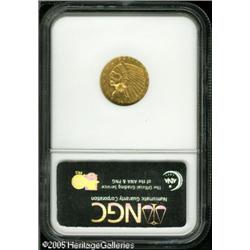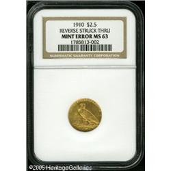 <B>1910 $2 1/2 Quarter Eagle--Reverse Struck Thru--MS63 NGC.</B></I> IN GOD WE TRUST is only partially legible, as a small amount of debris filled the die in the vicinity. The strike is otherwise bold, and the lightly marked surfaces possess shimmering luster. Lot:11038
