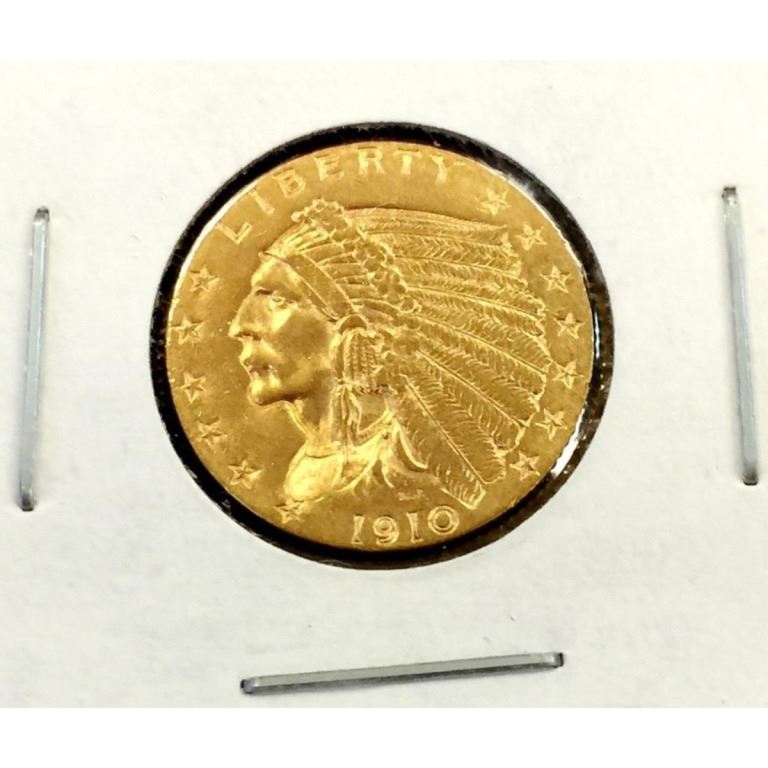 1910 $2.5 Gold Indian in 2x2 XF/AU Grade