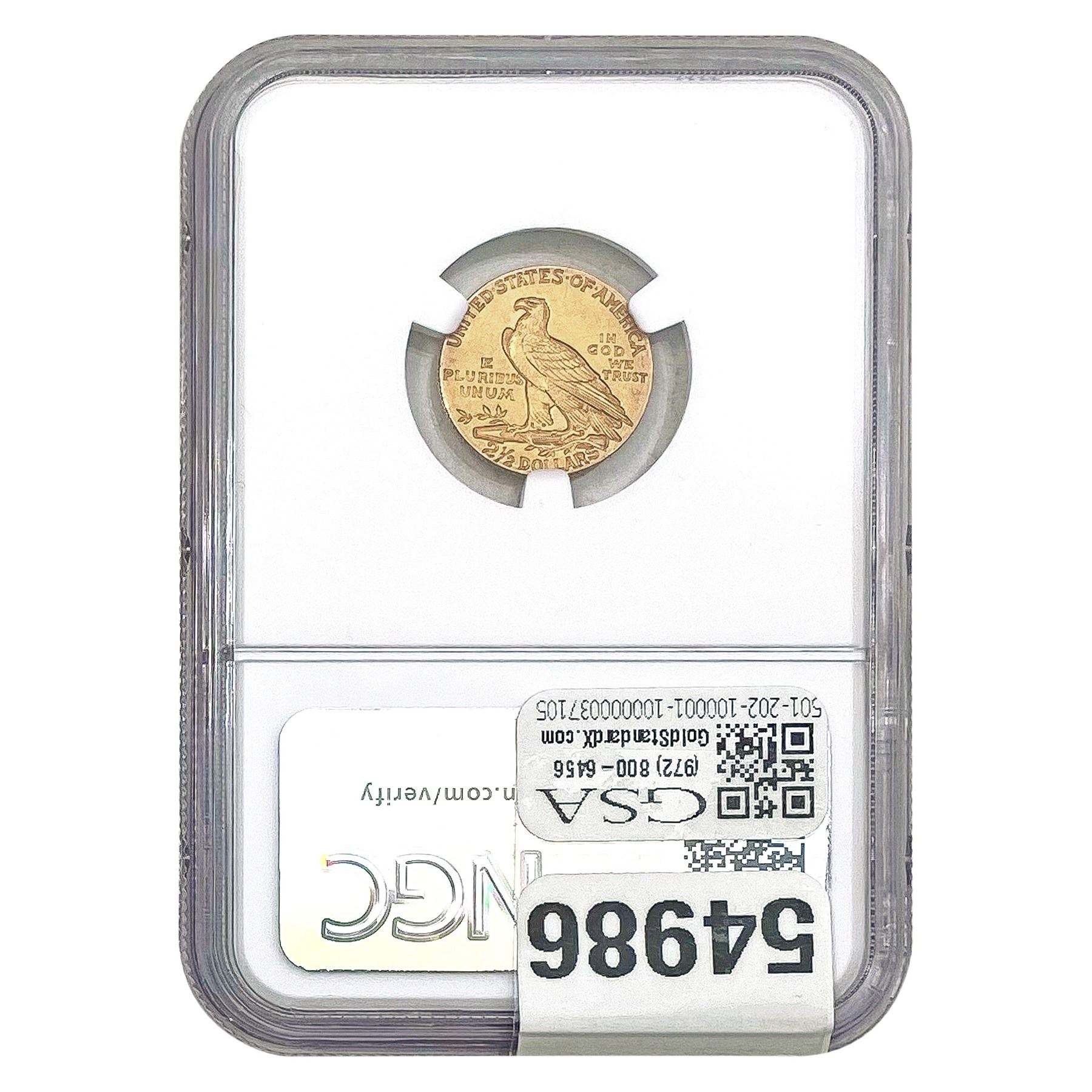 1910 $2.5 Indian Head NGC AU58