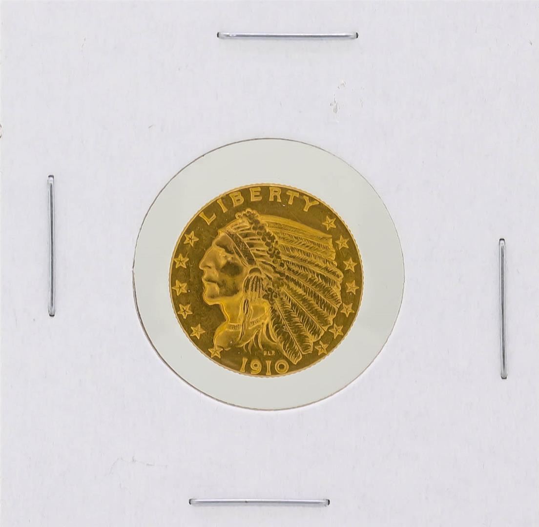 One 1910 $2.5 Indian Head Quarter Eagle Gold Coin CU.