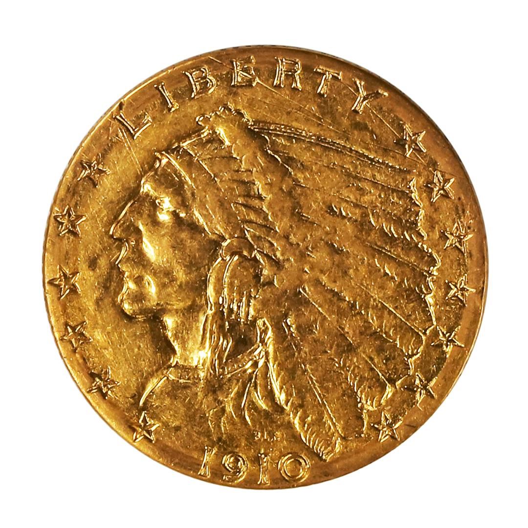 One 1910 $2.5 Indian Head Quarter Eagle Gold Coin C.