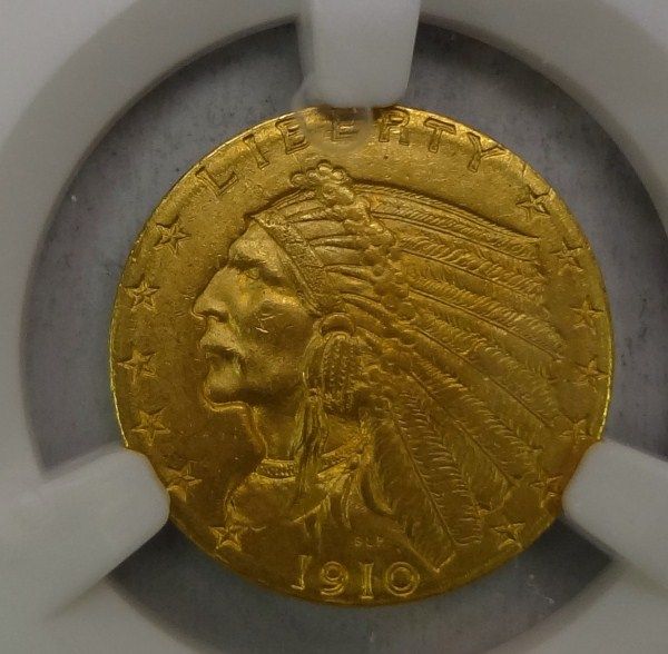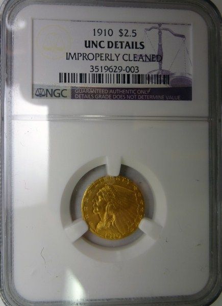 1910 $2.50 GOLD INDIAN NGC UNC SAYS CLEANED BUT ITS MS63 IN OUR OPINION