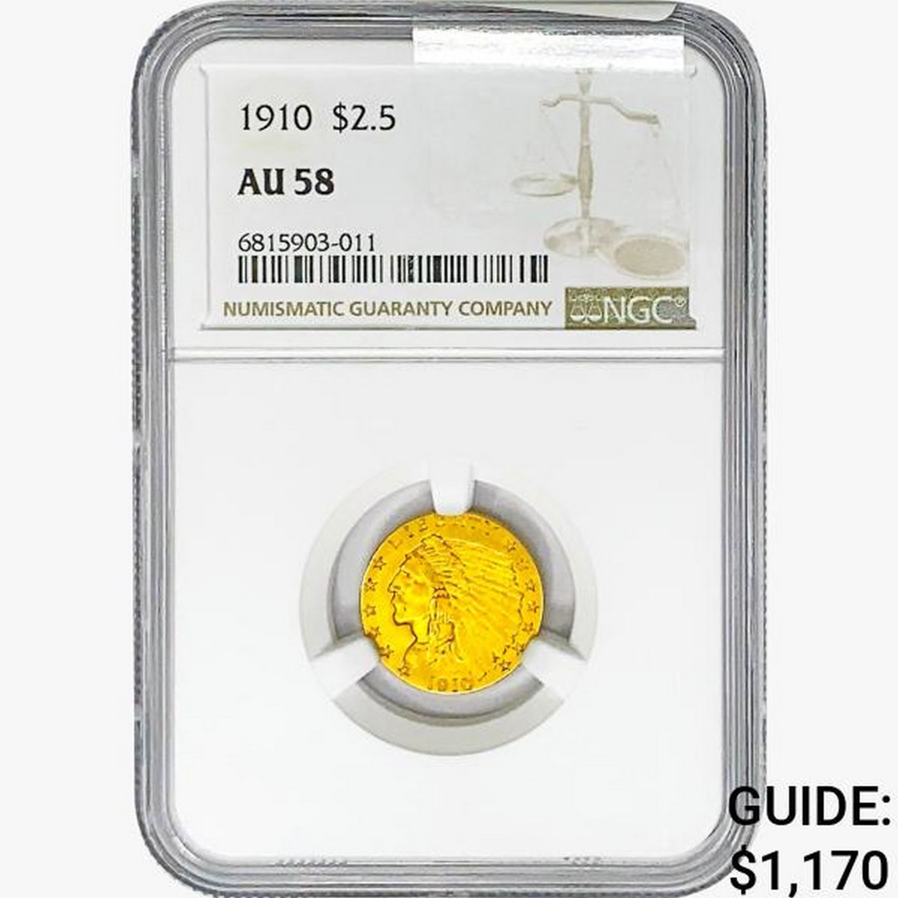 1910 $2.50 Gold Quarter Eagle NGC AU58
