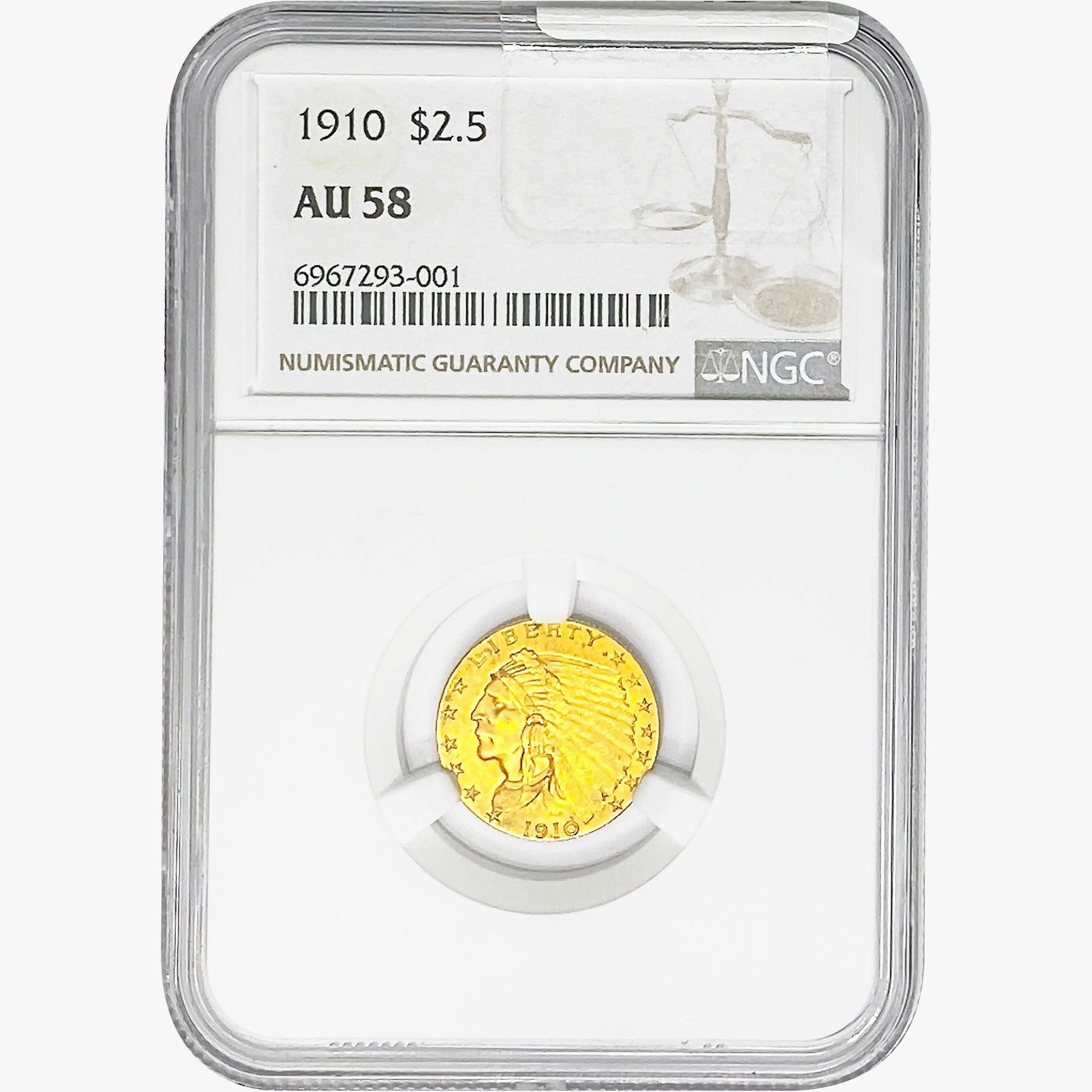 1910 $2.50 Gold Quarter Eagle NGC AU58