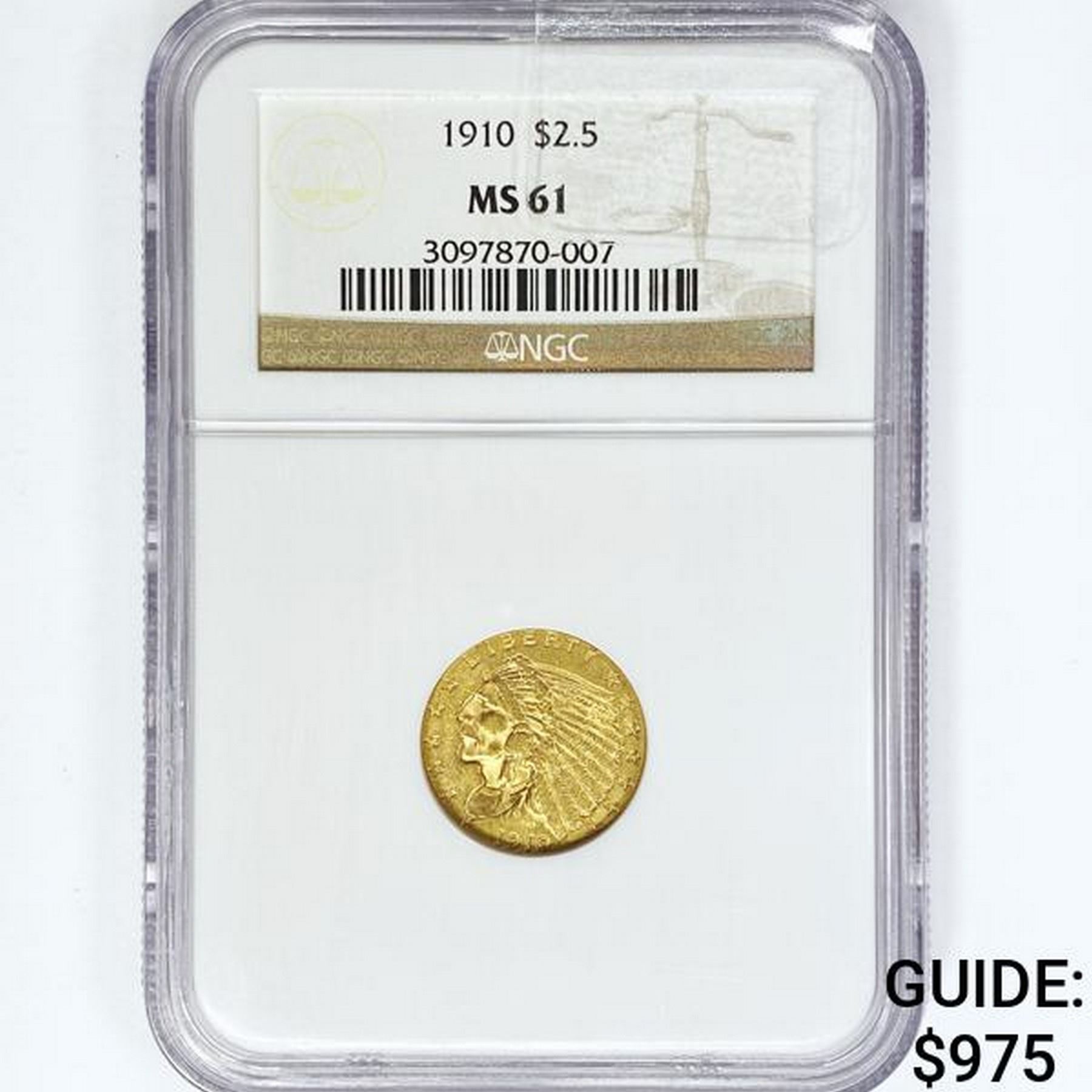 1910 $2.50 Gold Quarter Eagle NGC MS61