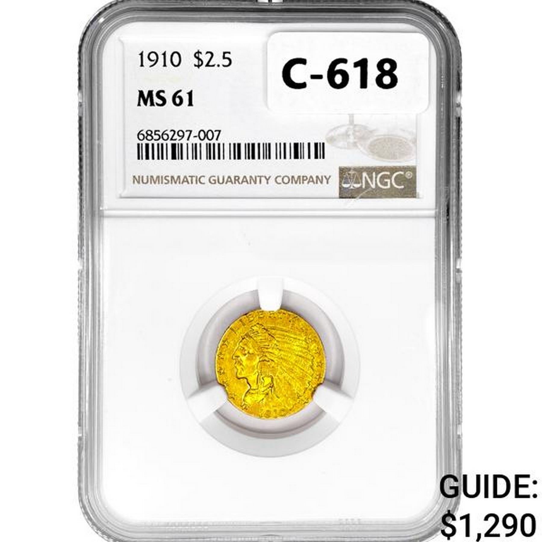 1910 $2.50 Gold Quarter Eagle NGC MS61