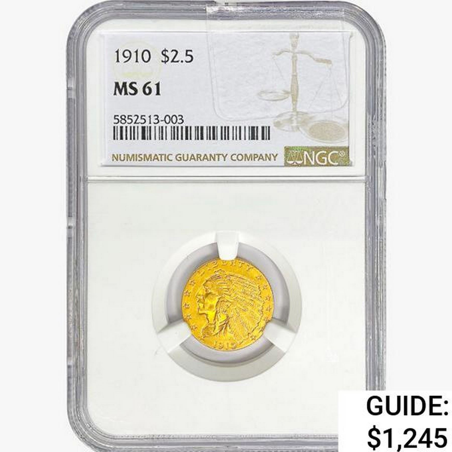 1910 $2.50 Gold Quarter Eagle NGC MS61