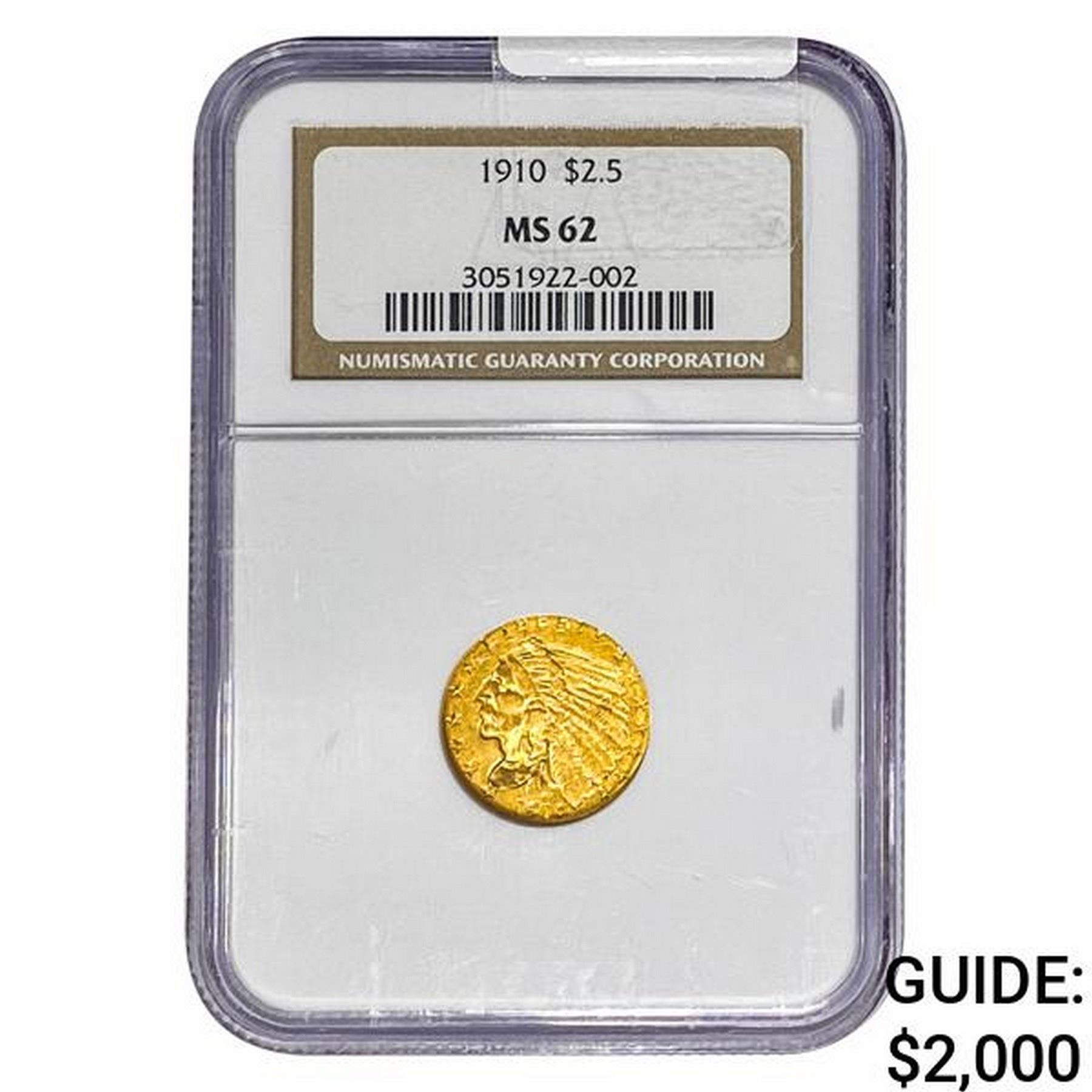 1910 $2.50 Gold Quarter Eagle NGC MS62