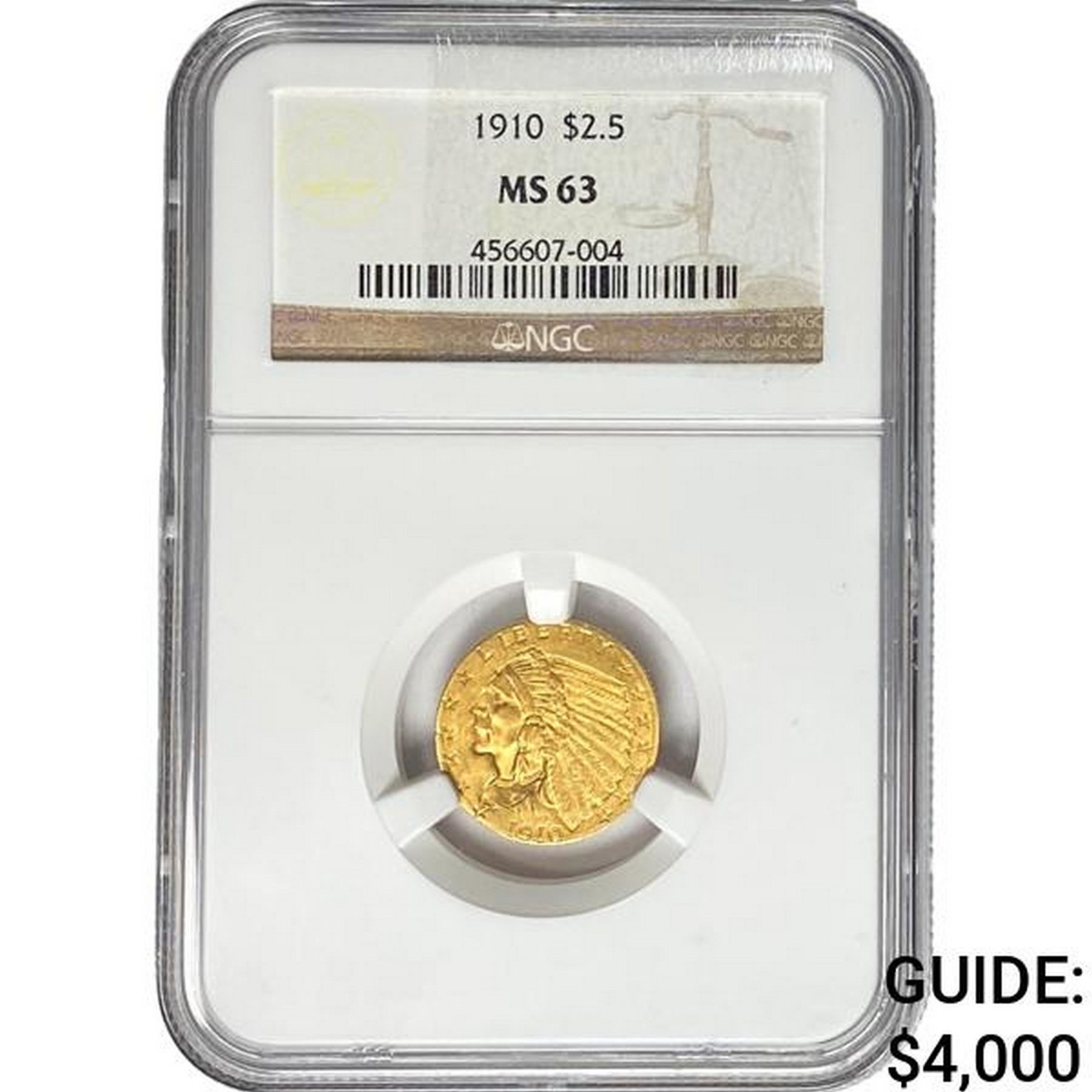 1910 $2.50 Gold Quarter Eagle NGC MS63