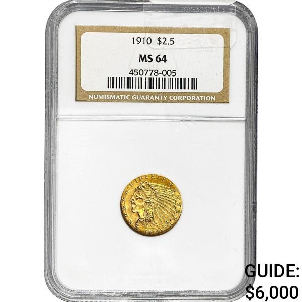 1910 $2.50 Gold Quarter Eagle NGC MS64