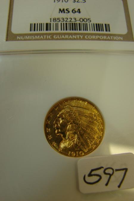 1910 $2.50 Indian Head Gold Coin NGC MS64