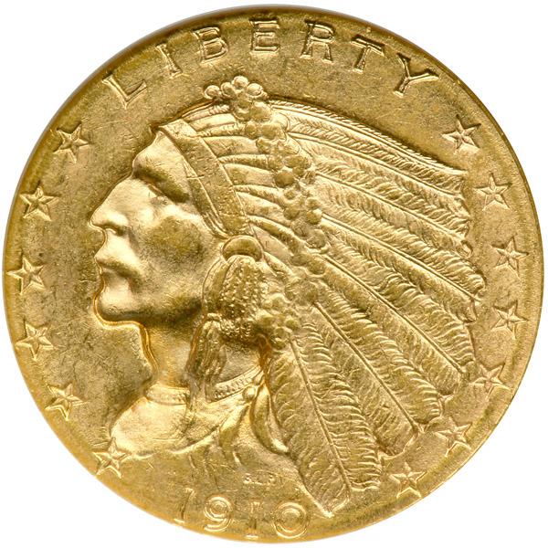 1910 $2.50 Indian. NGC graded MS-63. Frosty and untoned.