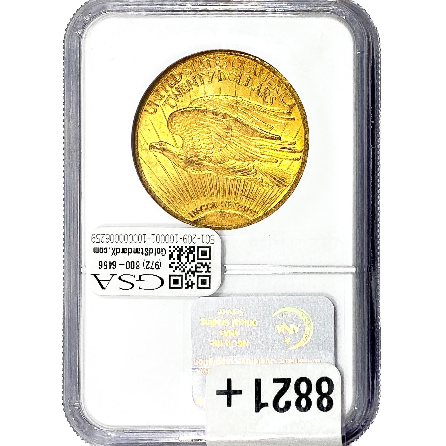 l. All non-certified coins and currency are guaranteed genuine, but are not guaranteed as to grade, since grading is a matter of opinion, an art and not a science, and therefore the description rendered by GSA or any third-party grading service may not agree with the opinion of others (including trained experts), and the same expert may not grade the same item with the same grade at two different times. GSA may, but is not obligated to, express an opinion as to non-certified numismatic items, in GSA’s opinion, or by its employees’ experience and the current interpretation of the American Numismatic Association’s standards as of the date the catalog was prepared. There is no guarantee or warranty expressed or implied that the grading opinions utilized by GSA, if any, will meet the standards of any grading service at any time in the future.