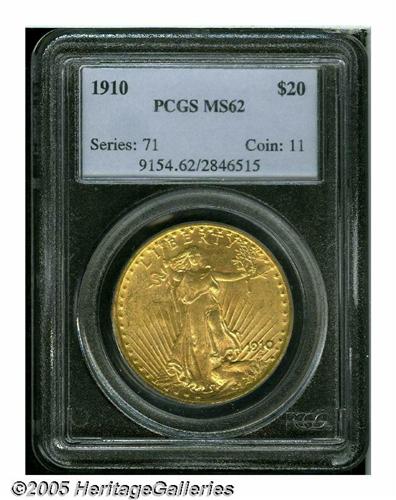<B>1910<$20> MS62 PCGS.</B></I> A lovely double eagle with rich yellow-gold luster. Lightly abraded surfaces as expected, and the design elements are well executed.