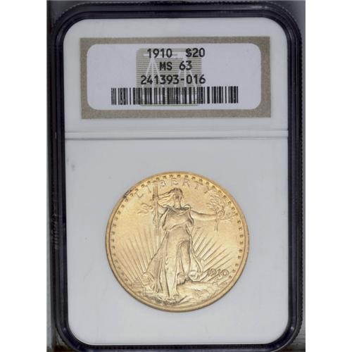 1910 $20 MS63 NGC. Sharp definition is apparent on the