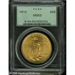 <B>1910 $20 MS63 PCGS.</B></I> Flashy with well defined surfaces that reveal fewer marks than are usually associated with the grade. Lot:9502