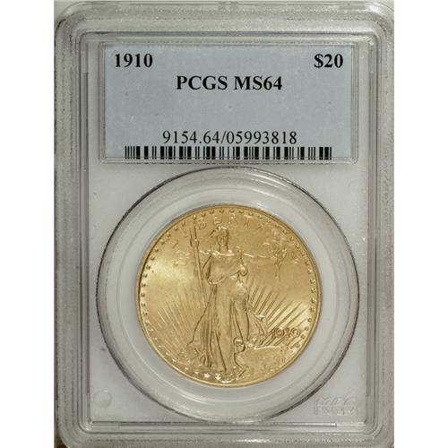 <B>1910 $20 MS64 PCGS.</B></I> A subtly lustrous example, well struck with few flaws in the wheat-gold fields. Several grazes and a few other light marks are present on Liberty.<BR><BR><b>Shipping:</b> Coin/Currency (<a target="_blank" href="http://www.heritageauctions.com/common/shipping.php">view shipping information</a>)