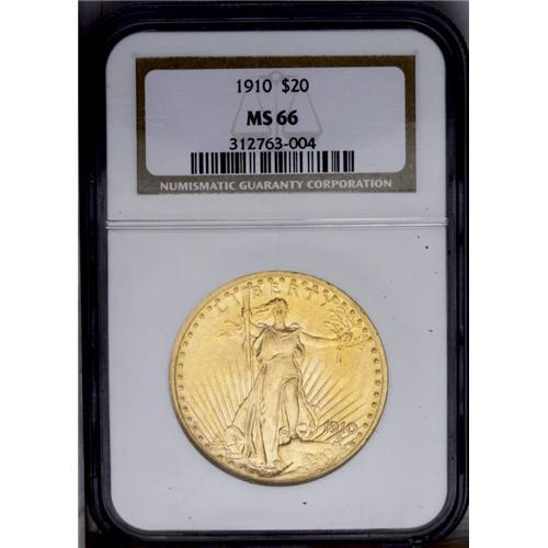 <B>1910<$20> MS66 NGC.</B></I> From an original mintage of 482,000 business strikes comes this powerfully impressed Premium Gem, whose carefully preserved surfaces distinguish it from most other Mint State representatives of this date. Both sides are colored in rich reddish-gold patina that accents the fully detailed features, and swirling mint frost. Identifiable by a single vertical mark on the reverse from the eagle's lower beak down to the rim. In lower grades, the 1910 is the most common P-mint Motto double eagle produced from 1908 through 1915, but true Premium Gems, such as the present specimen, are of the utmost rarity and desirability. Census: 5 in 66, 0 finer (2/06).