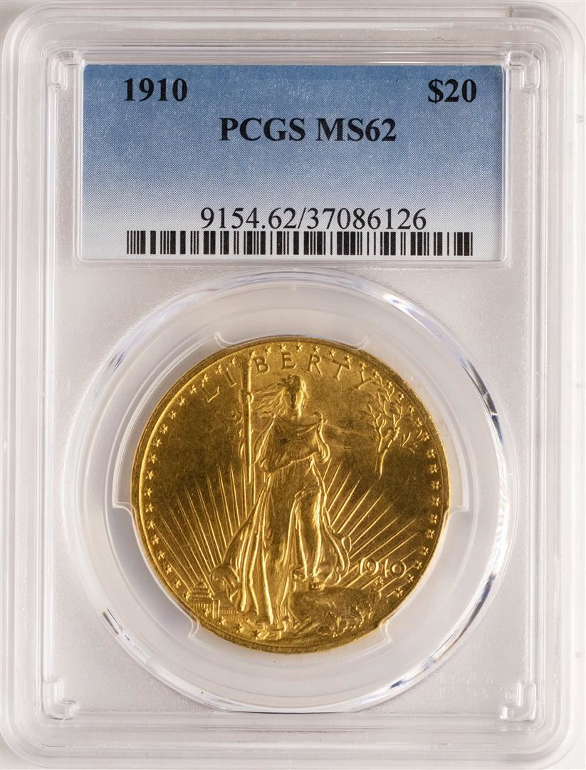 One 1910 $20 St. Gaudens Double Eagle Gold Coin PCGS MS62.