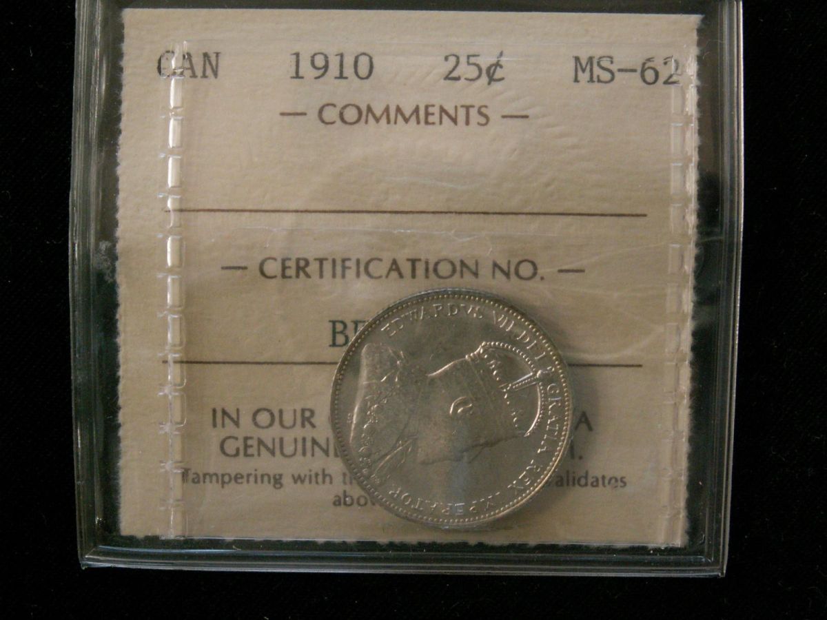 1910 25¢ ICCS MS62. Attractive example with extremely attractive reverse.