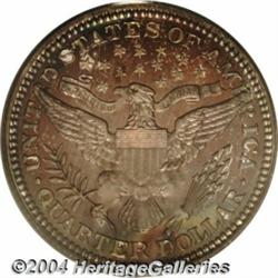 <table><tr><td><table><tr><td>1910 25C PR67 PCGS. The fields are very deeply mirrored and the surfaces appear flawless, even under strong magnification. Each side is toned in deep shades of scarlet and cobalt-blue--a coin of obvious originality. Population: 17 in 67, 5 finer (2/04). <BR><BR><B>Important notice:</B> Heritage usually auctions material at the rate of 200-250 lots per hour. On some occasions eBay Live bid software or the Internet may not be able to keep up with the pace of the auction. We recommend placing a realistic absentee bid now as insurance to avoid disappointment. Occasionally the auctioneer may eliminate or reject an eBay Live bid, and the auctioneer may also reopen a lot after the close of the eBay live bidding (usually because we missed an audience bid), and may reject your bid even if it shows you as the winning bidder. By bidding via eBay Live, you agree that Heritage may award the lot to another bidder at its sole discretion under the circumstances described above or any other reasonable circumstances. Since eBay bids are not shown to us until we open the lot on the floor, we treat those bids just like floor bids. In most cases the floor responds before the eBay bid is presented to us, due to Internet lag time, so for consistency we have made it a policy that floor bids are always considered first over tie eBay live bids. Also please note that all Heritage lots purchased through eBay Live carry a 20% Buyer's Premium. Please make sure you read the Terms and Conditions before you bid. <BR><BR><B>IMPORTANT ANNOUNCEMENT ABOUT RESERVES:</B> Heritage now divulges all reserves on its web site 7 days before every auction. If you want to know whether the reserve on this lot has been met, and if not, what the reserve amount is, please visit this lot page on the HeritageCoin.com web site, or email: bid@HeritageGalleries.com </span></font></td></tr></table></td></tr></table>