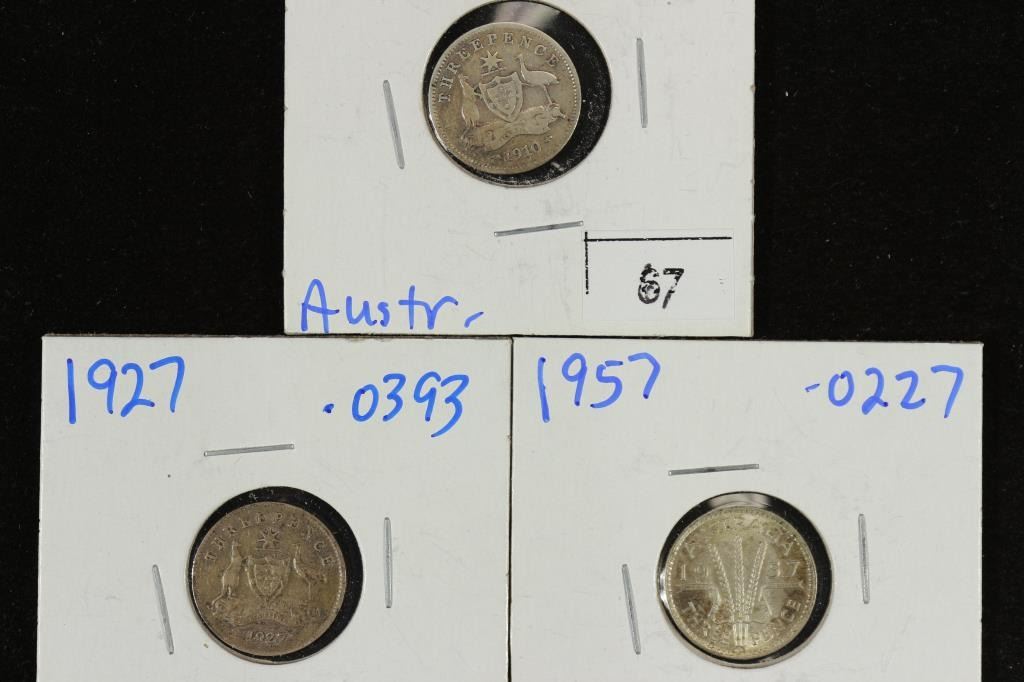 1910,27 & 57 AUSTRALIA SILVER 3 PENCE .1039 OZ.ASW