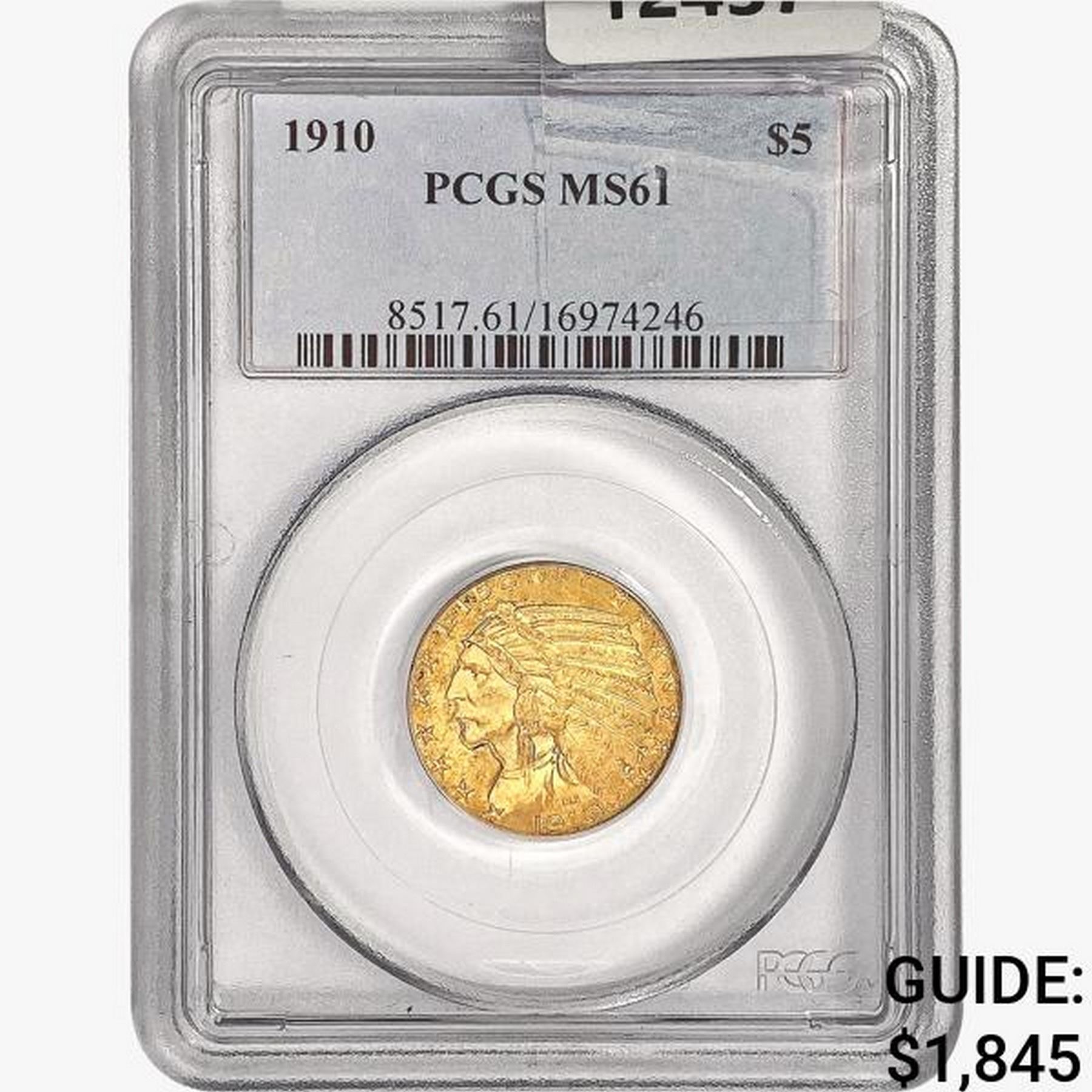 1910 $5 Gold Half Eagle PCGS MS61