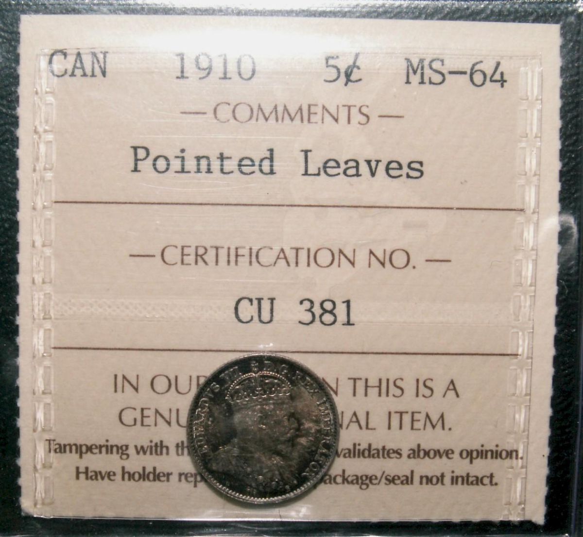 1910 5¢ Ptd Lvs ICCS MS64. Gem Edward issue, with sublime eye appeal