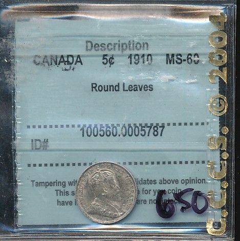 1910 5¢ Round Lvs CCCS MS60. Scarce variety