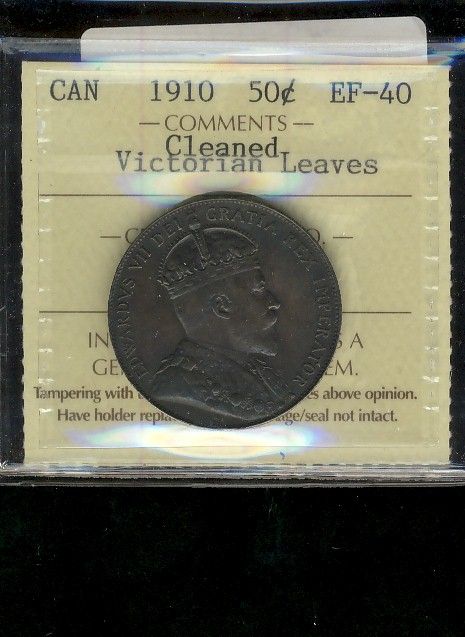 1910 50¢ Vic Lvs ICCS EF40. Cleaned.