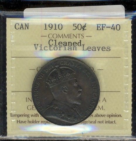 1910 50¢ Vic Lvs ICCS EF40. Lightly Cleaned, still a decent example.